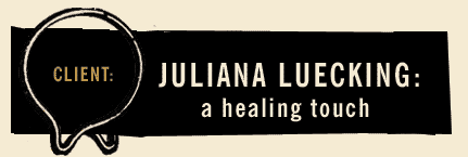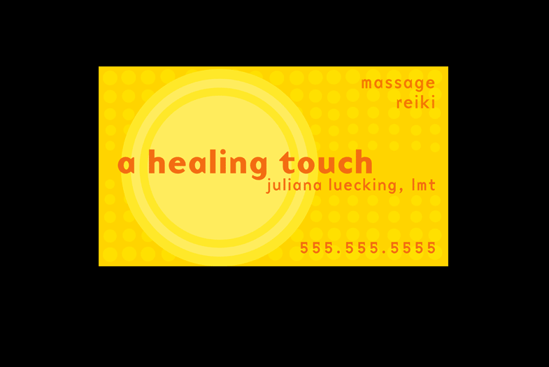 Juliana Luecking wanted a promotional business card/magnet to give away to clients for her massage and reiki practice. Splendid Corp. came up with a design that was bright cheery soothing and uplifting, giving a sense of the positive healing touch one would receive as a client.