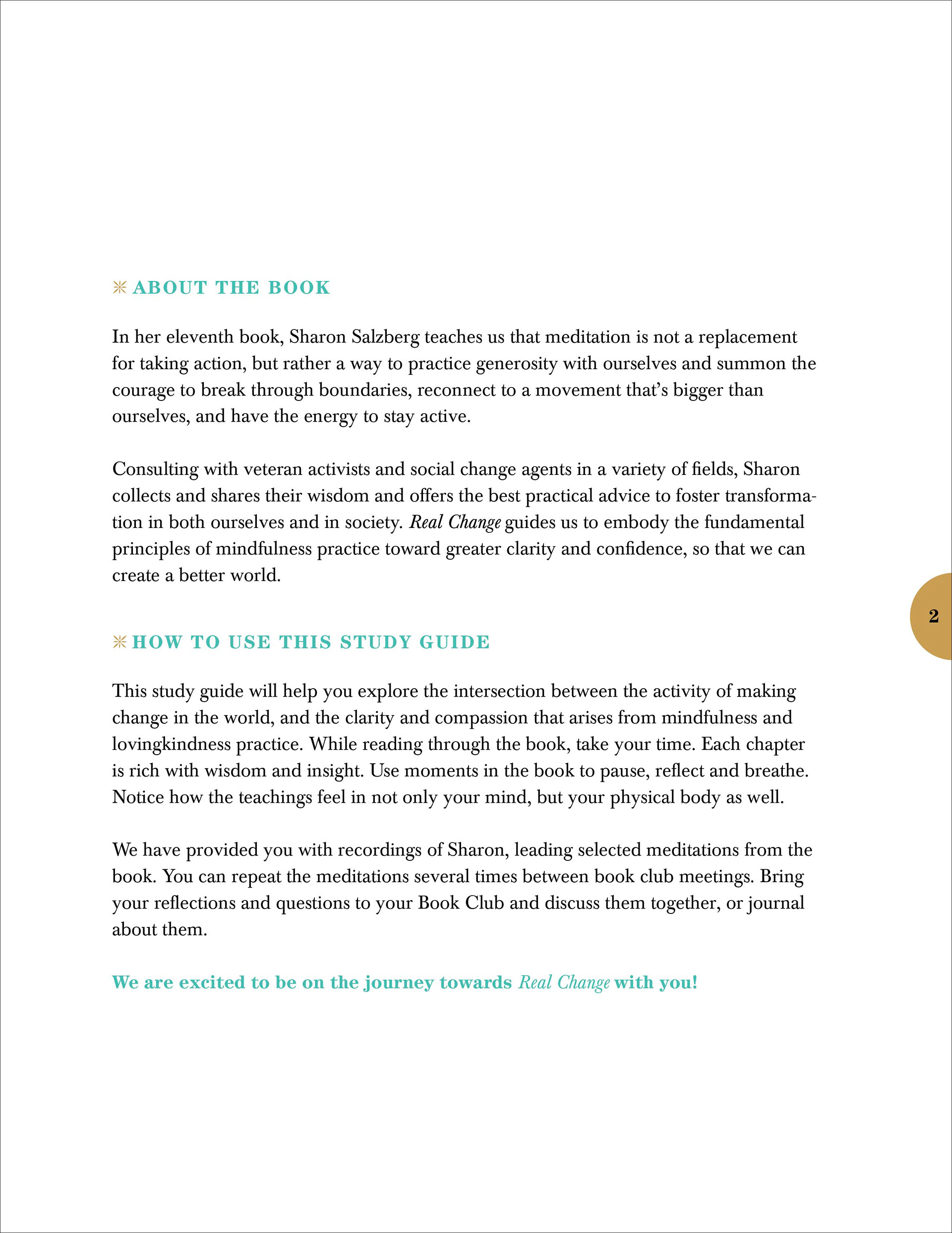 Book Club Guide for Sharon Salzberg's REAL CHANGE | 2020